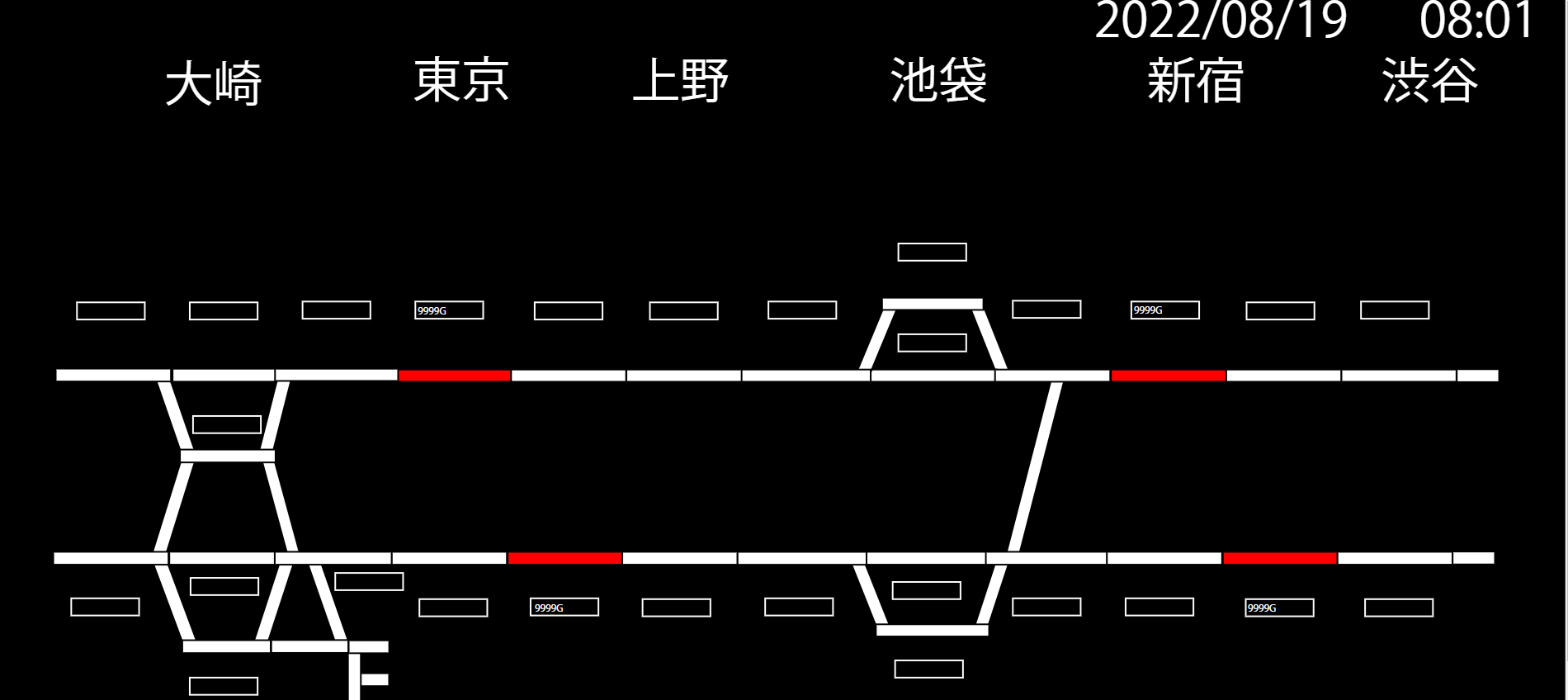 実際に在線したときは赤で表示され列番も表示できる予定でした。