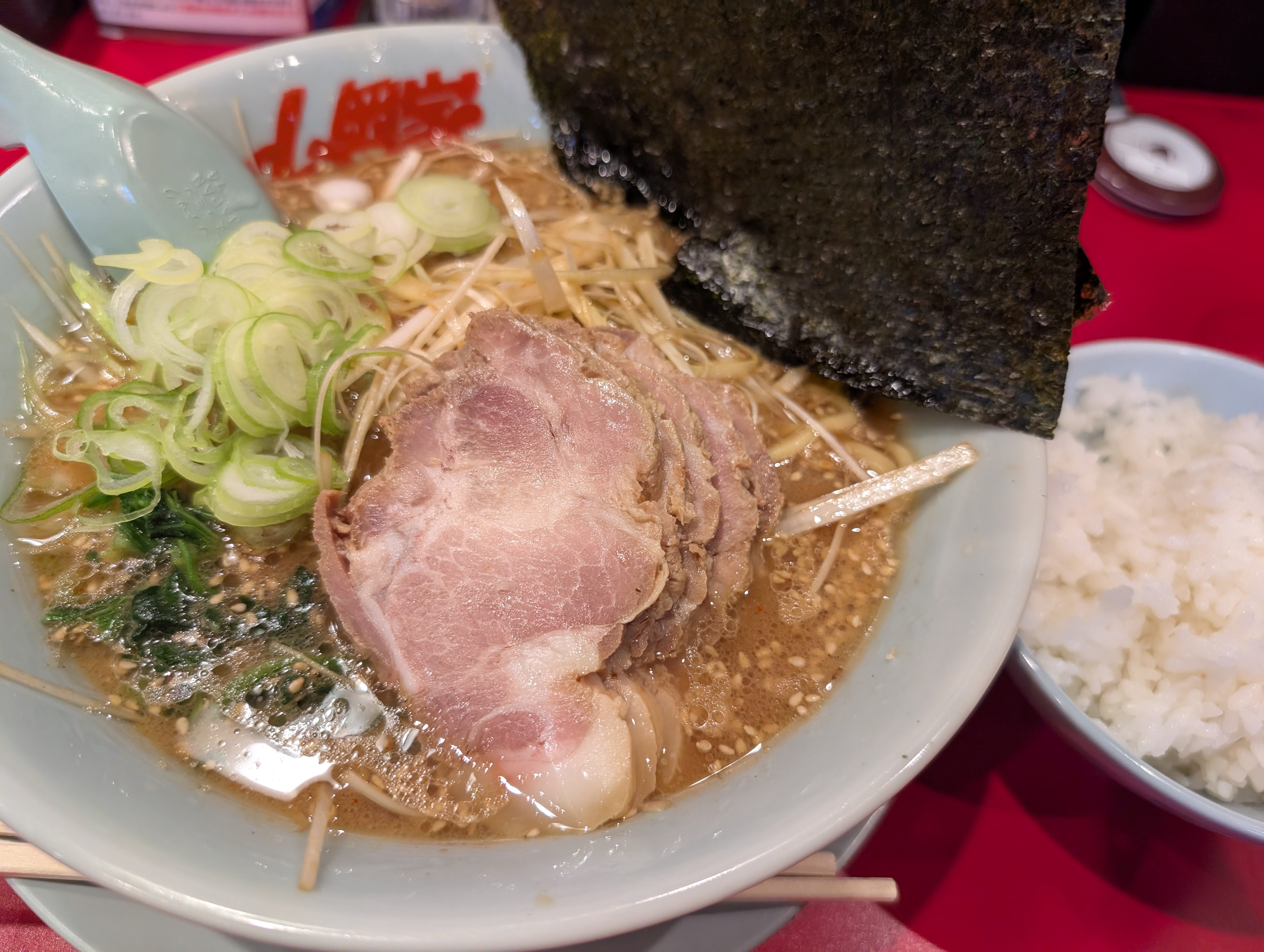 このラーメンは、デフォルトで美味しい味玉(卵)が入っているのも嬉しいポイント。でも、やっぱりこの味とご飯を最大限に楽しむには、海苔は必須アイテムなんです。山岡家の海苔は、スープに浸しても溶けすぎず、しっかり形を保ってくれるのも使いやすいんですよね。